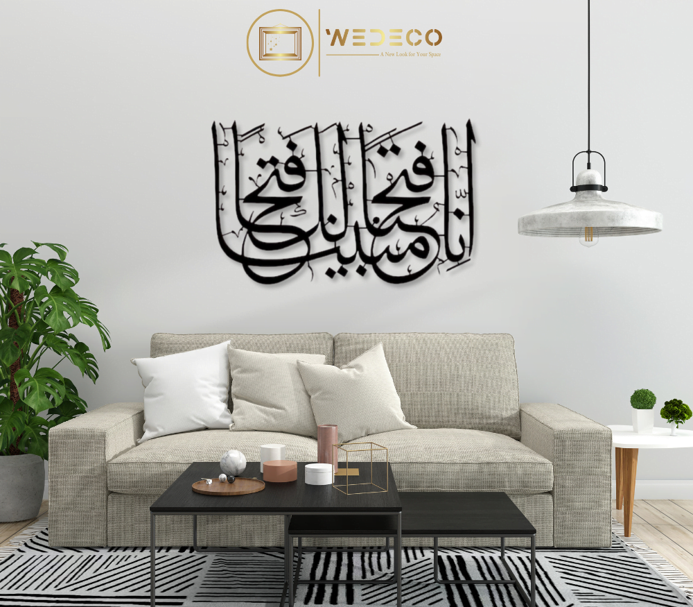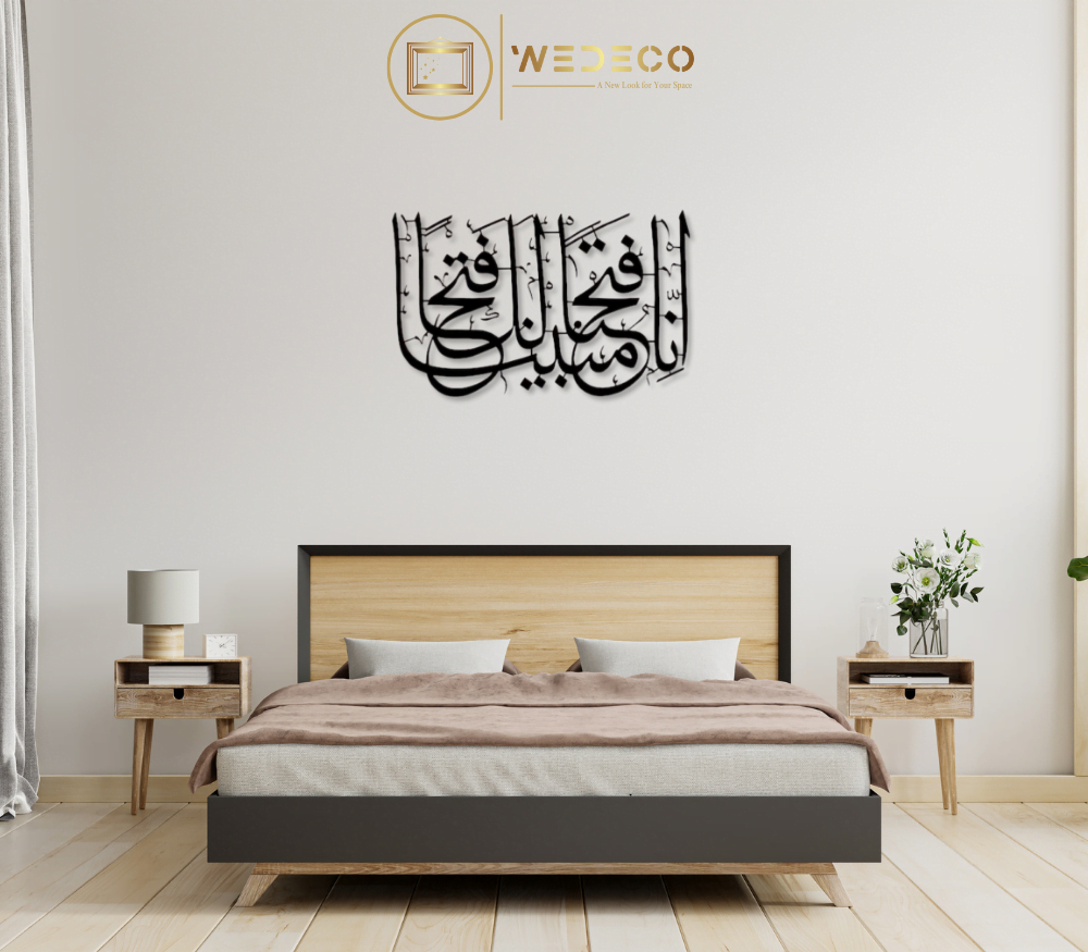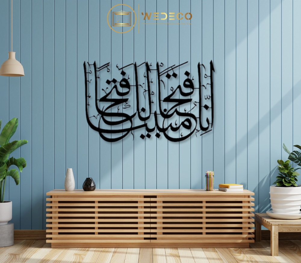 Apportez la sagesse et la spiritualité du Coran dans votre maison avec notre Décoration Murale Islamique, illustrant le verset 1 de la sourate Al-Fath, “إنا فتحنا لك فتحا مبينا”. Ce verset puissant est magnifiquement intégré dans un design artistique, parfait pour embellir vos murs tout en rappelant les bénédictions divines. Idéal pour tout espace cherchant à allier beauté et spiritualité, cette pièce apporte une atmosphère apaisante et sacrée à votre intérieur.