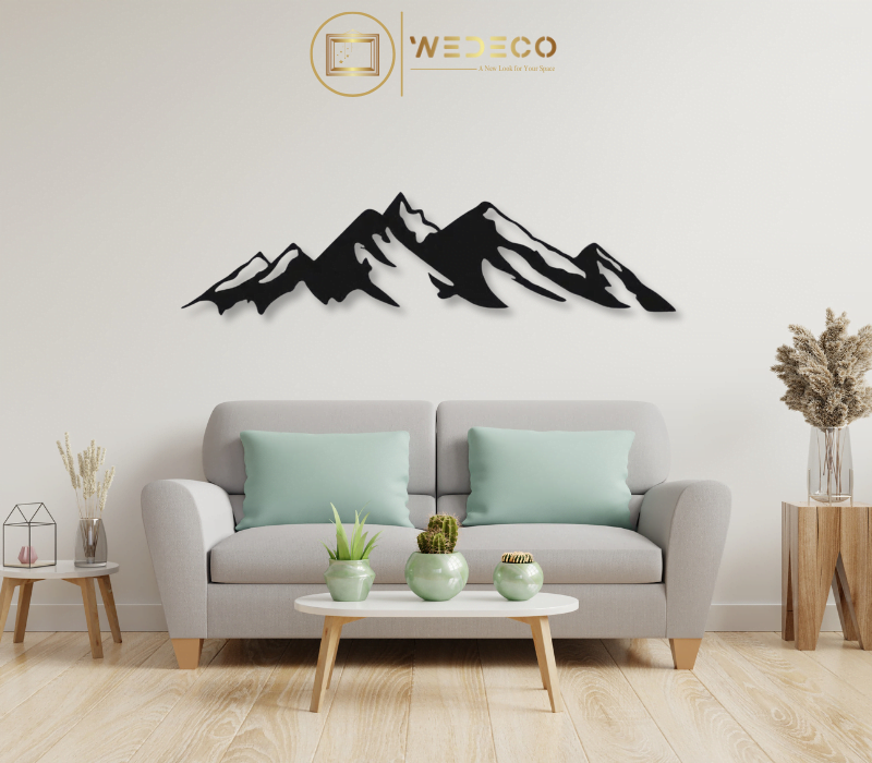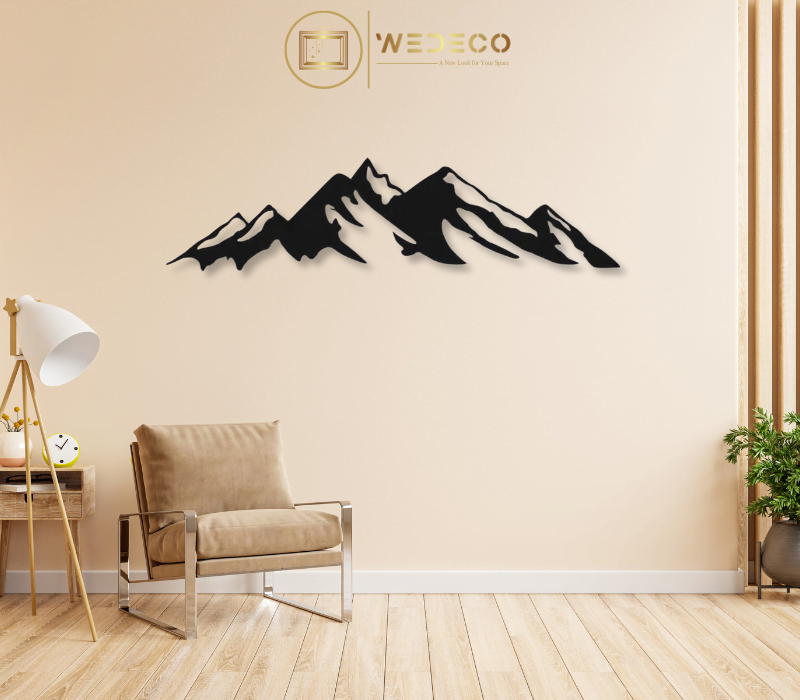 Décoration murale illustrant un paysage de montagnes, idéale pour ajouter une touche de grandeur naturelle à votre intérieur.