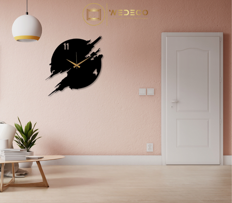 Cette horloge murale présente un design unique en forme de cercle solide qui semble avoir subi un impact, créant un effet visuel frappant et contemporain. Le motif de l’impact ajoute une dimension de mouvement et d’intérêt visuel, faisant de cette horloge plus qu’un simple appareil de mesure du temps, mais une œuvre d’art murale. Idéale pour les espaces qui embrassent un style moderne et minimaliste, cette horloge attire le regard et stimule l’imagination dans les bureaux, les salons ou les studios.