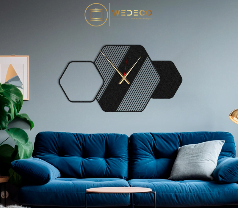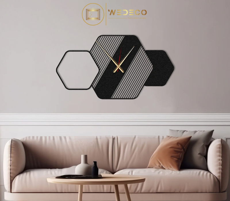 Élevez votre espace avec cette horloge murale unique au design hexagonal. Ce design artistique et moderne est parfait pour ajouter une touche de sophistication et de style à votre salon, chambre ou bureau. Fabriquée avec des matériaux de haute qualité, cette horloge garantit une durabilité et une finition soignée, faisant de chaque pièce une œuvre d’art fonctionnelle et captivante. Les formes hexagonales et les motifs linéaires créent une scène harmonieuse qui attire immédiatement l’attention.