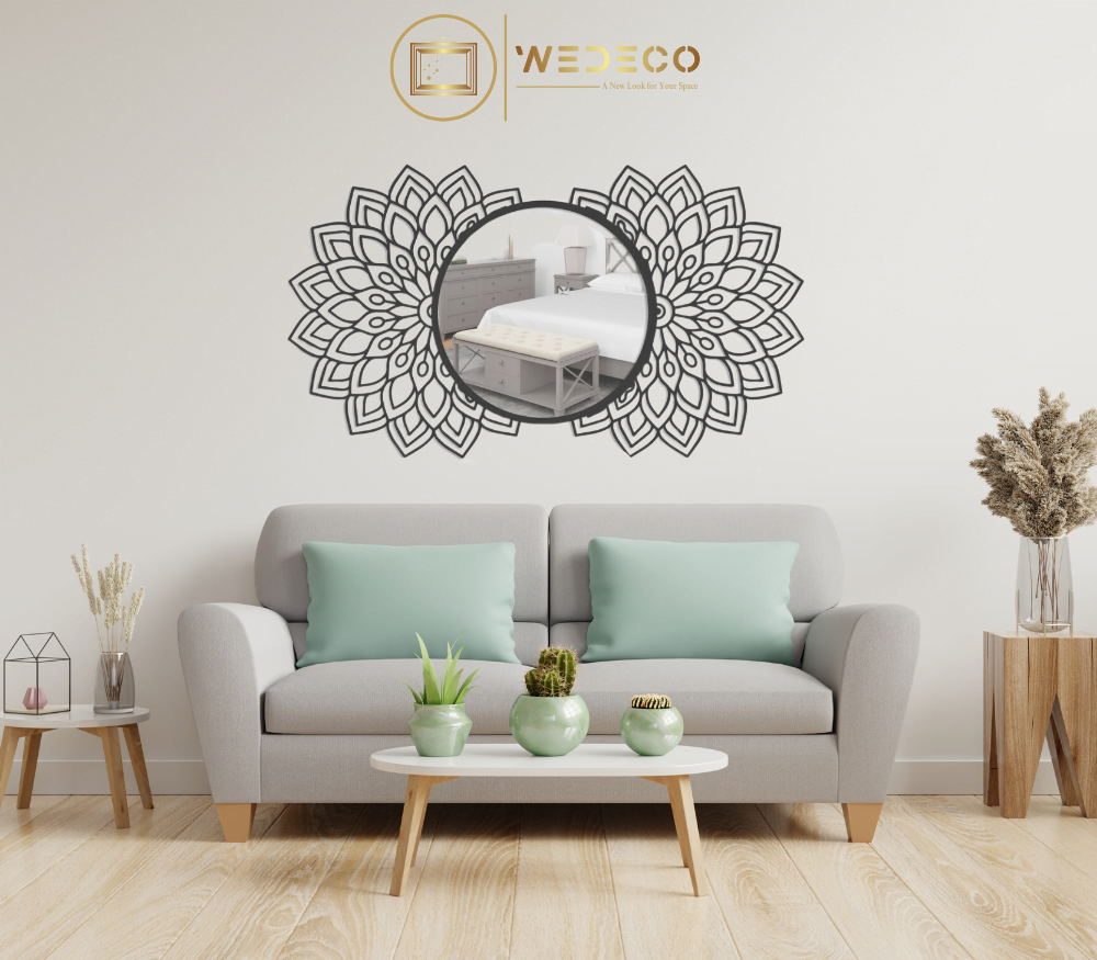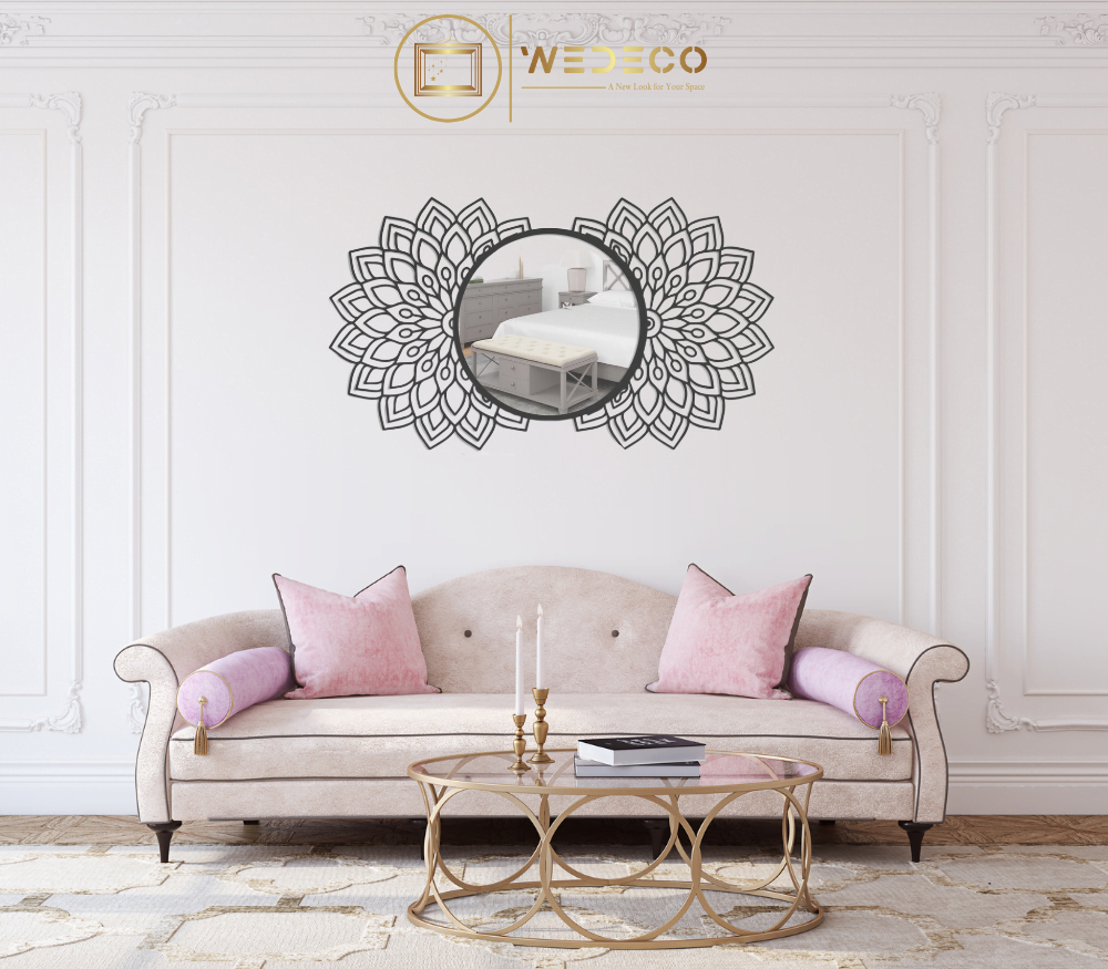 Ce miroir décoratif se distingue par son design raffiné, avec deux demi-fleurs délicatement placées sur les côtés. Ce motif floral ajoute une touche d’élégance et de sophistication, rendant ce miroir idéal pour les espaces où vous souhaitez combiner fonctionnalité et esthétique. Parfait pour les salons, chambres ou espaces de vie, ce miroir embellit tout en apportant une note de fraîcheur florale.