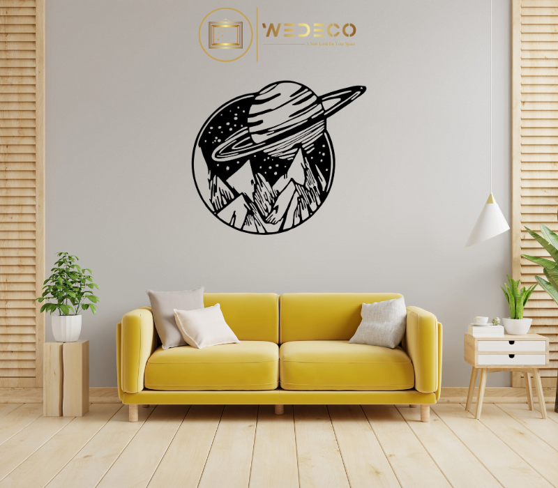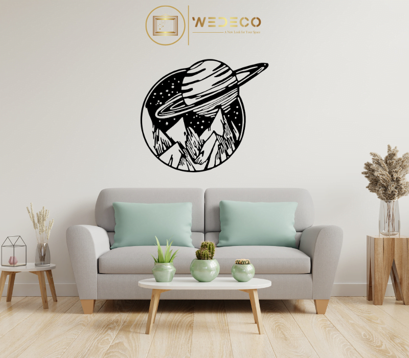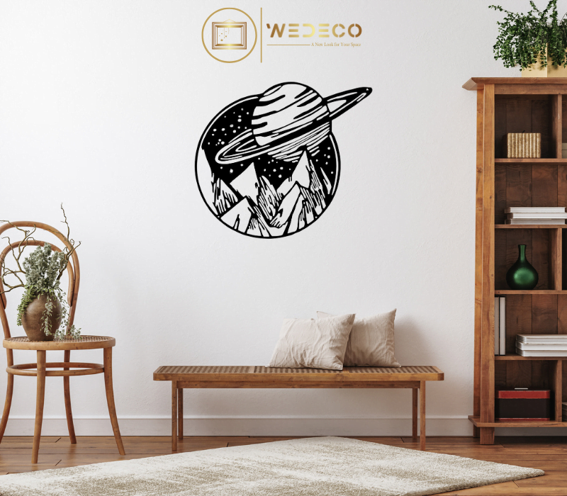 Tableau Décoratif Montagnes et Saturne – Art Mural Cosmique